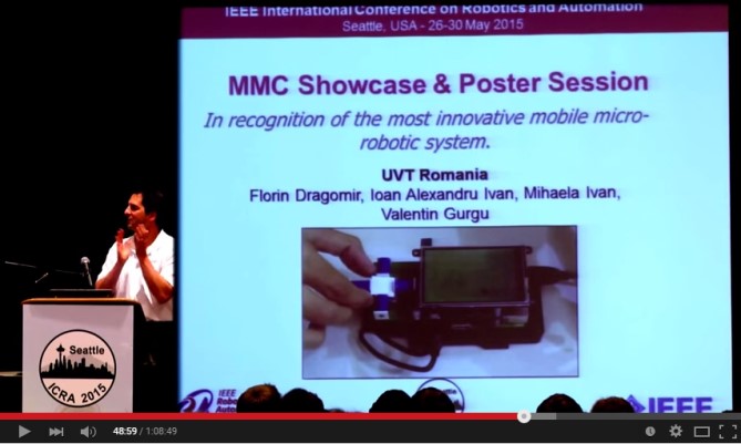 Premiul I in cadrul concursului 2015 Mobile Microrobotics Challenge secțiunea ”MMC Showcase & Poster Session Winner”