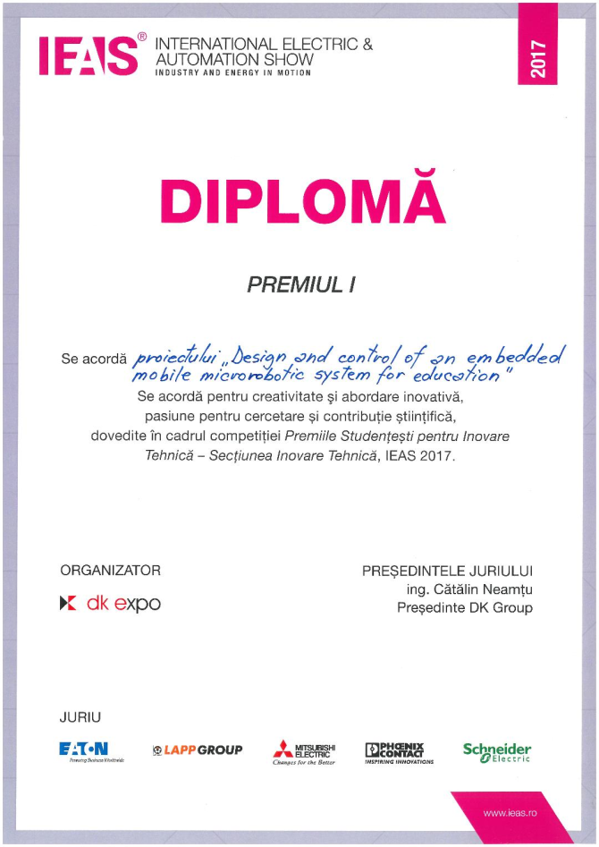 The team competed in the even at the ”The International Electric & Automation Show (IEAS 2017)”, in București, in period 19 – 22 September 2017