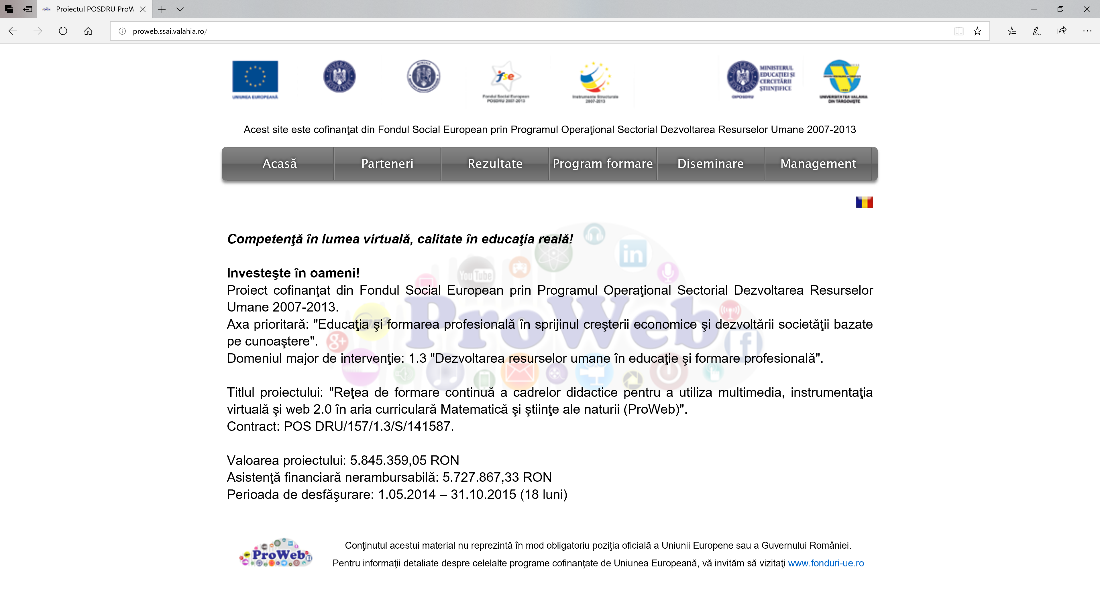 Reţea de formare continuă a cadrelor didactice pentru a utiliza multimedia, instrumentaţia virtuală şi web 2.0 în aria curriculară Matematică şi ştiinţe ale naturii (ProWeb)